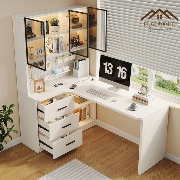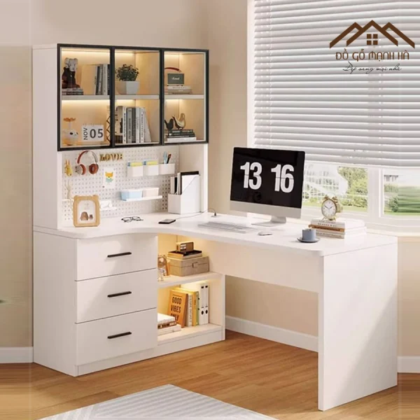 Bàn Làm Việc Kèm Kệ Để Đồ Trang Trí Có Cửa Kính và Ngăn Kéo