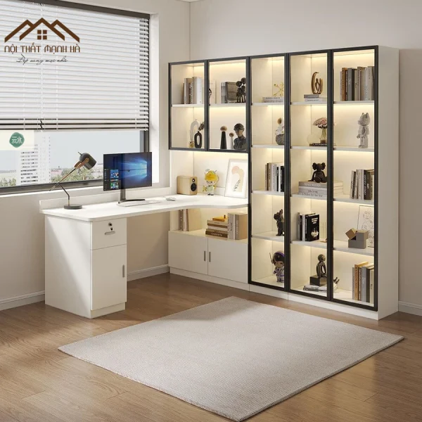 Sản phẩm bàn làm việc kết hợp kệ trang trí được thiết kế theo phong cách hiện đại, phù hợp với xu hướng nội thất thông minh. Đây là giải pháp lý tưởng cho những ai muốn tạo dựng không gian làm việc gọn gàng, tiện nghi và đậm chất cá nhân.