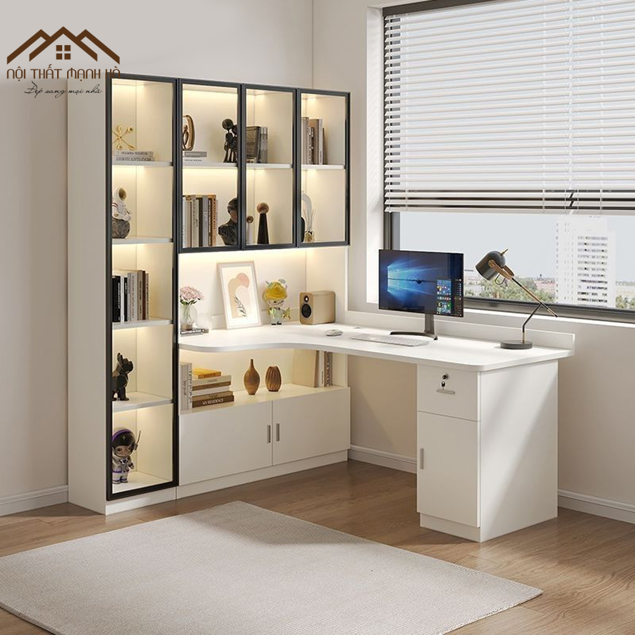 ✅ Thiết kế tối ưu không gian, tích hợp kệ để sách, decor và đồ dùng văn phòng