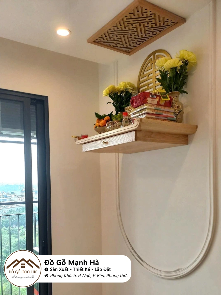 Phù hợp đặt bàn thờ Thần Tài – Thổ Địa, thờ gia tiên, hoặc làm ban treo cho chung cư.