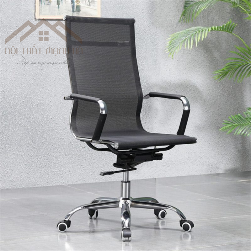 - Chất liệu: Lưng lưới thoáng khí, khung thép mạ chrome.